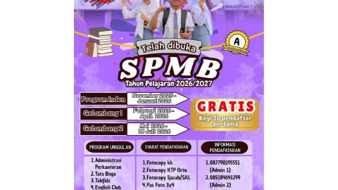 SMAS Muhammadiyah 1 Kepanjen telah membuka Sistem Penerimaan Murid Baru (SPMB) Tahun Pelajaran 2026/2027.